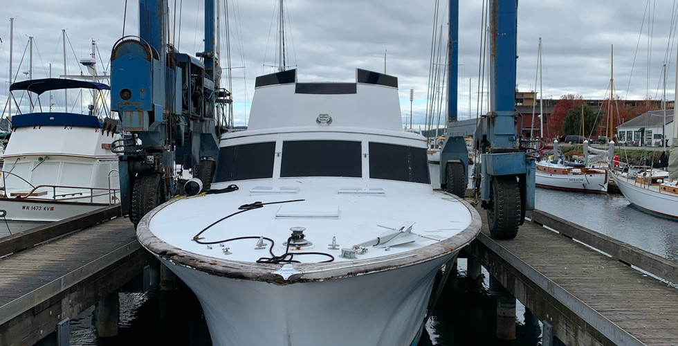 I happened to be in Oregon when the boat arrived--and I guess I haven't introduced myself, I'm Sara, boater by marriage (to Pat) and author of this blog (and amateur cartoonist). See- ing the boat and the state she's in after years of neglect was a bit overwhelming. But, as Pat says, we own a boatyard! And I'm definitely ON BOARD with bringing this old girl back to life. See videos below. Pat has worked with the SEA crew to begin removing stuff--the gigantic generator, the black water tanks, and miles and miles of wiring. More videos coming in a separate blog for those who want every detail.